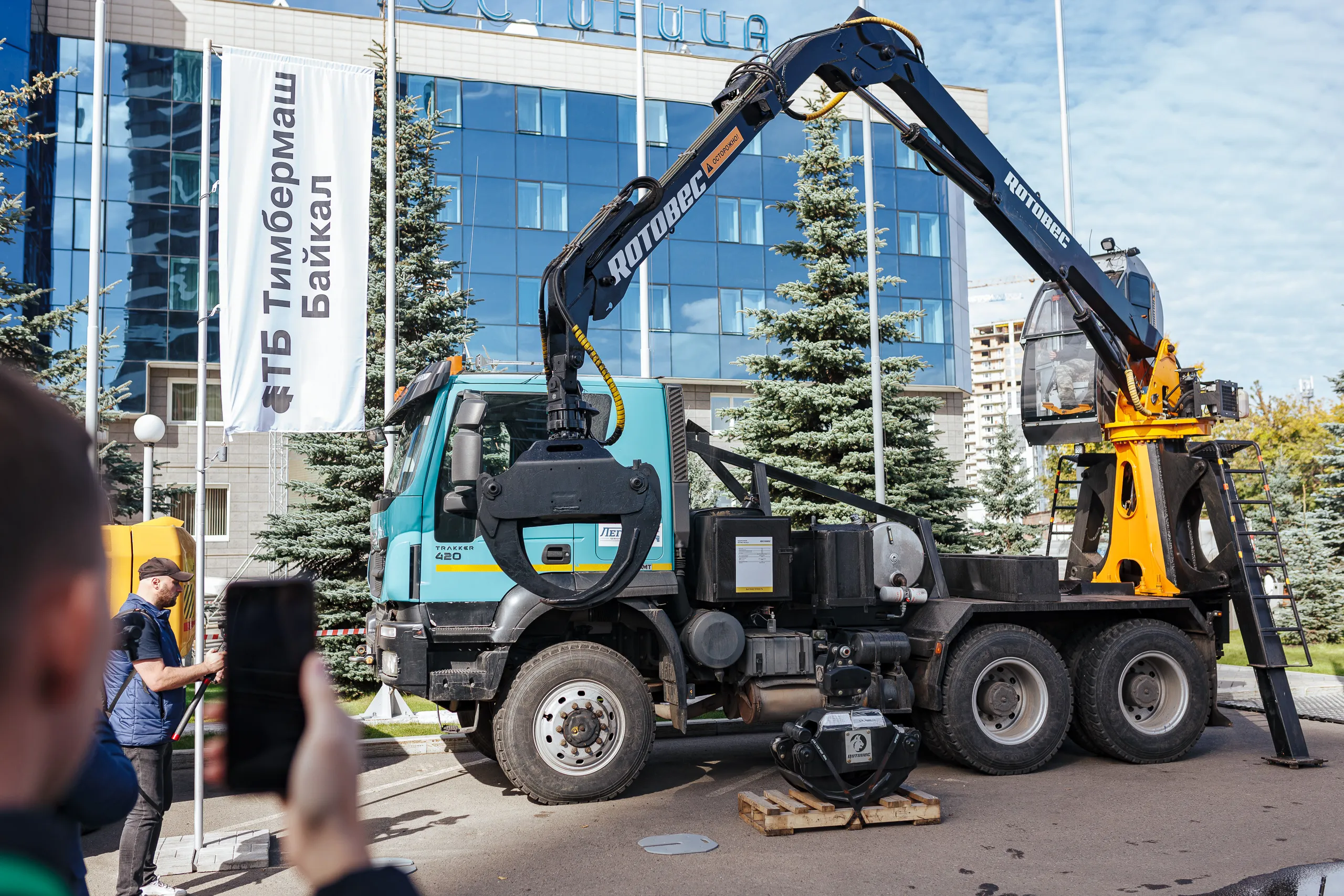 Вызывала интерес и уличная экспозиция, где центральное место занял экскаватор John Deere Е260LC c установленной харвестерной головкой Waratah HTH622B, манипулятор Rotobec Elite 915, мульчер для экскаватора FAE UML/HY-125 VT, дизельный вилочный погрузчик Manitou.