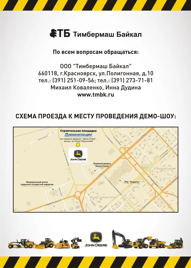 Компании John Deere и Тимбермаш Байкал при поддержке ООО «Монолитхолдинг» приглашают Вас посетить демо-шоу строительной техники John Deere.