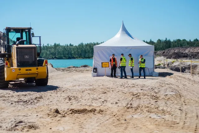 Мероприятие прошло при поддержке компании «Терра-Нова», на базе Сестринского карьера. Компания «Терра-Нова» является одним из ведущих производителей нерудных материалов в Ленинградской области и осуществляет круглогодичный намыв песка. В рамках обучения Владислав Жолнер – генеральный директор компании «Терра-Нова», провел экскурсию по карьеру и поделился своим опытом работы.