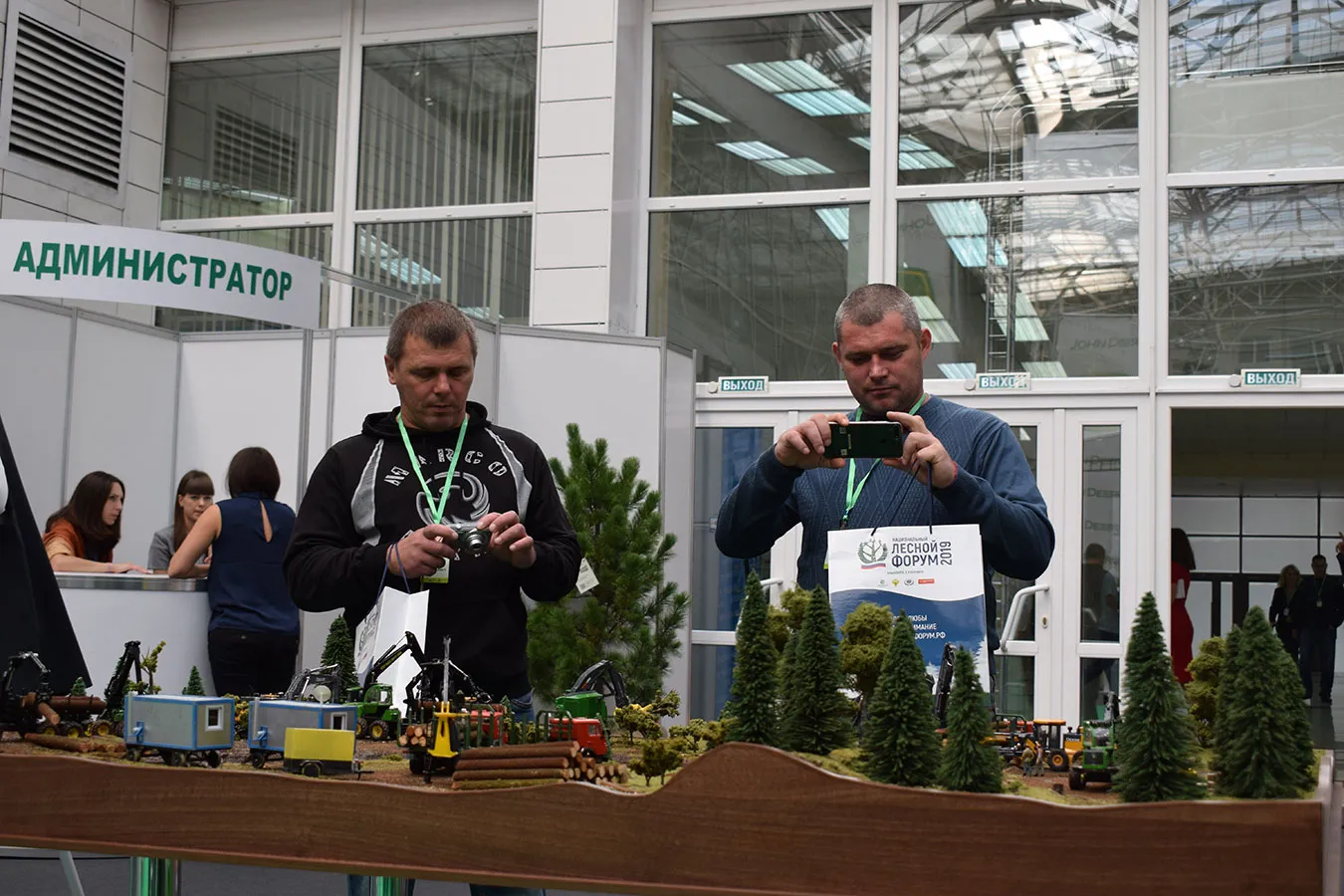 Безусловный интерес гостей мероприятия вызвал макет в масштабе 1:50, на котором мы показали виды работ, которые может выполнять лесозаготовительная и дорожно-строительная техника John Deere, оборудование для лесовосстановления Bracke Forest, погрузочно-разгрузочное оборудование Rotobec.